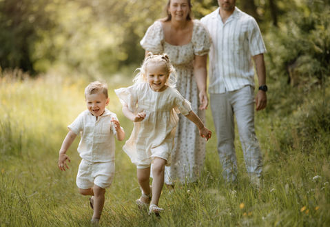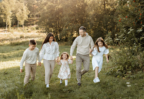 Familiefoto hos meg skal fortelle deres historie. Bilder ute i naturen åpner for dynamiske og lekne bilder som fanger dere slik dere er. Under denne fotograferingen leker og tuller vi - løper, kaster og klemmer. Det er sånn vi får de levende bildene! Barna elsker det.